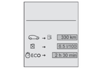 Dès que l'autonomie est inférieure à 30 km, des tirets s'affichent. Après un complément de carburant d'au moins 5 litres, l'autonomie est recalculée et s'affiche si elle dépasse 100 km.