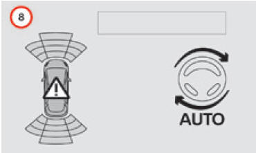 Sans dépasser la vitesse de 8 km/h, effectuez les manoeuvres d'avance ou de recul, en vous aidant des avertissements de la fonction "aide au stationnement", jusqu'à l'indication de la fin de la manoeuvre.